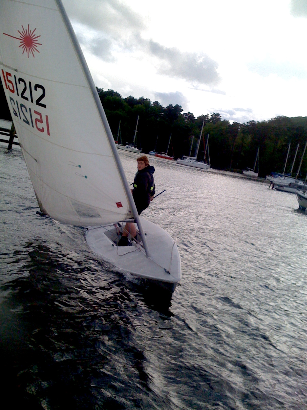 You try telling him sailing standing up isnt the way you are supposed to do it. (Taken on my iPhone - not bad really)