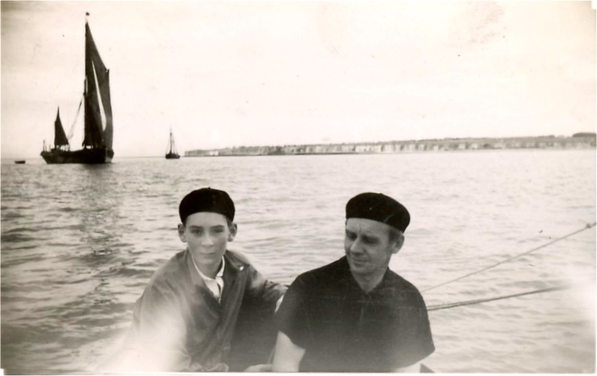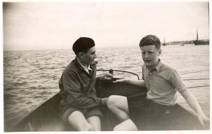 I’m starting to scan a few old shots that I have found in the family albums that I can use to pull our story together. This is my Dad when he was about 12 sailing with his Dad. He is probably in Iris, their 12′ gaff rigged, clinker built, dinghy. I’m trying to remember something he told me about their matching french berets. I’ll have to go back to source to get the facts…Sorry for the poor quality of the image – I have left it as is rather than photoshop it – more because I just want to get on with things, rather than for authenticity. Many years later Dad brought Iris up to Windermere and she was our first boat to sail as children, in our Swallows and Amazon type of childhood.